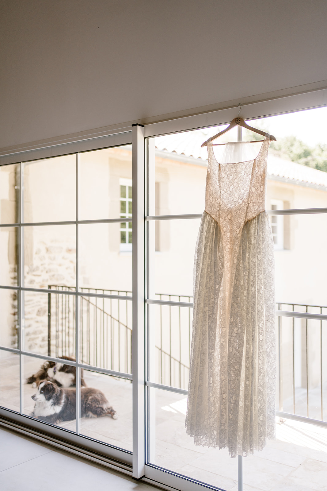 Ahes, dentelle perlée, mousseline de soie & crêpe fluide.